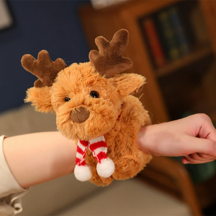 La forme générale de l'élan est en position assise, avec une taille de 30 cm. Cette peluche peut également être transformée en bracelet en forme de boucle en forme de bras. Il peut encercler étroitement le poignet, le sac à dos, etc. de l'enfant. Tout ce que vous avez à faire est de tenir les deux extrémités et de l'aplatir, puis de viser n'importe quelle partie et d'appuyer pour former un câlin en peluche douce, il a une grande jouabilité.